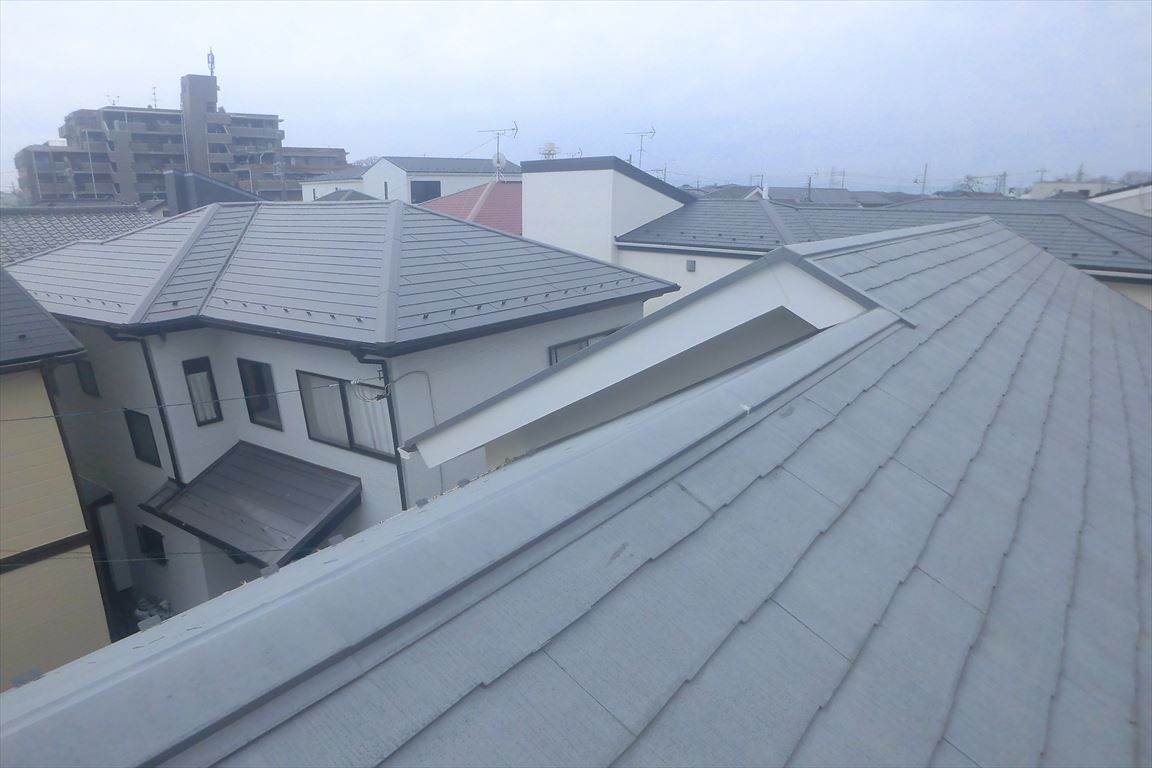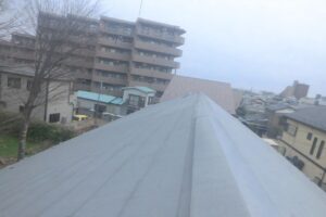 屋根の状態、棟板金、笠木の状態などを確認しています。